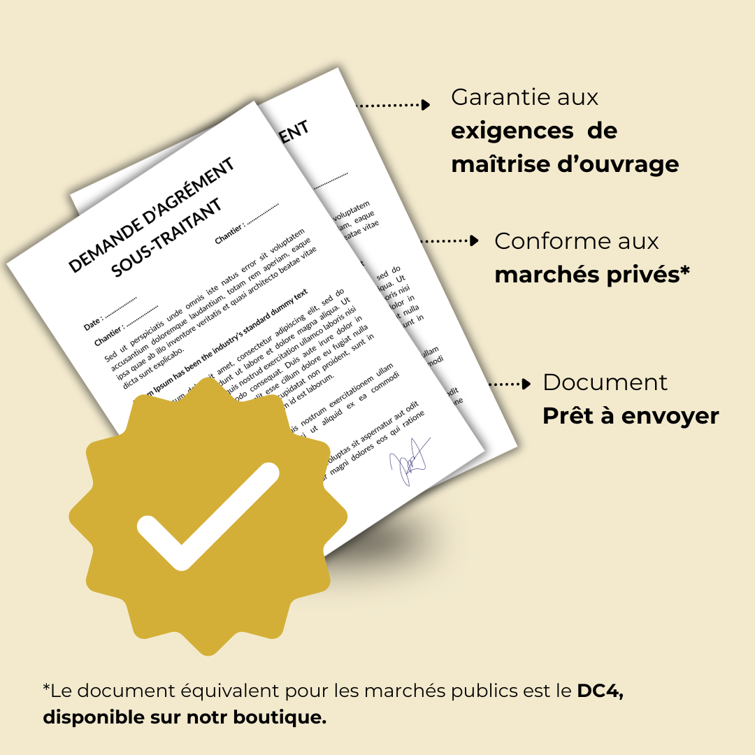 - Nous rédigeons une demande d'agrément de sous-traitant conforme et adaptée au marché.